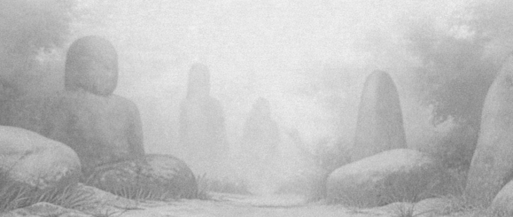 Au fond, des formes. Des statues ? Quelque chose d’ancien, de sacré.