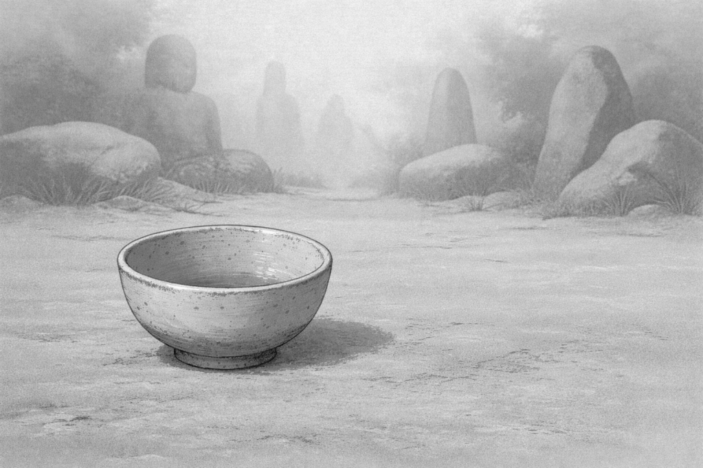 Un cercle se forme puis quelqu’un apporte un récipient. Un bol rempli de terre, mêlée à quelque chose de liquide.